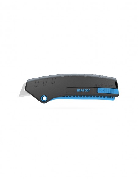 El cómodo cuchillo de seguridad SECUNORM MIZAR es la puerta de entrada al mundo de cúters de doble bloqueo de alta calidad. En lugar de empujar un desplazador se usa la palanca para liberar la hoja.
