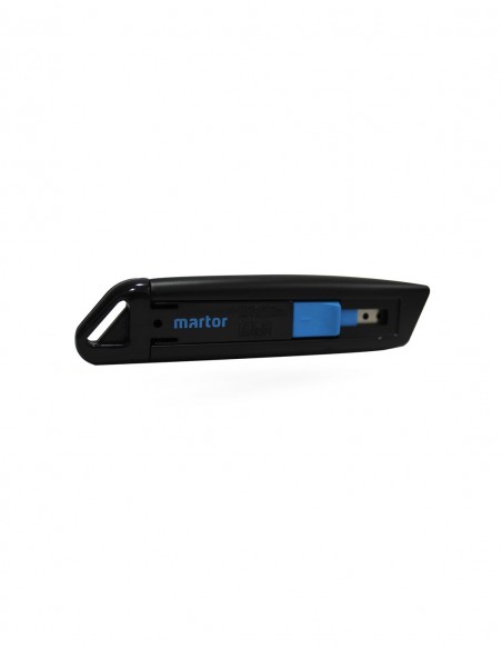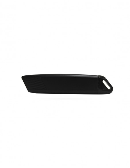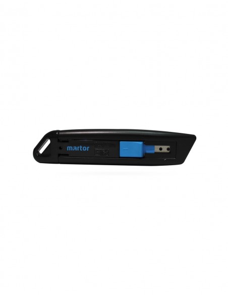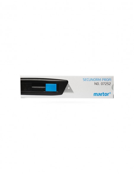 Para personas zurdas Cuerpo de mango de aluminio, la hoja esta cargada por resorte y desaparece automáticamente en el mango si el cuchillo se desviara del material a cortar y si no se bloquea el desplazador. Durante el corte el dedo pulgar se debe quitar del desplazador. Sencillo recambio de la hoja sin tener que emplear medias auxiliares empujando hacia atrás la parte interior.