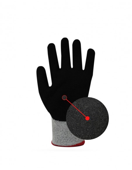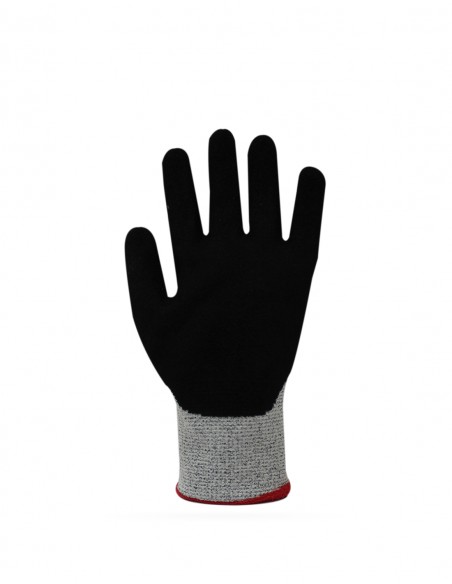 Guante de protección anti-cortes color gris, con Linner HDPE y con recubrimiento de Nitrilo negro, con una asombrosa flexibilidad y destreza.