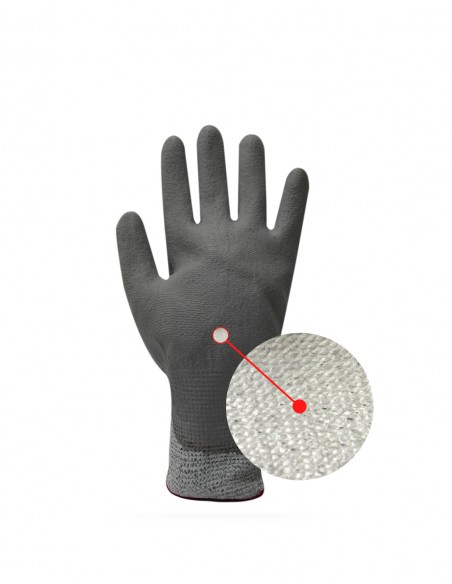 Guante de protección anti-cortes color gris, con Linner HDPE y con recubrimiento PU, con una asombrosa flexibilidad y destreza.