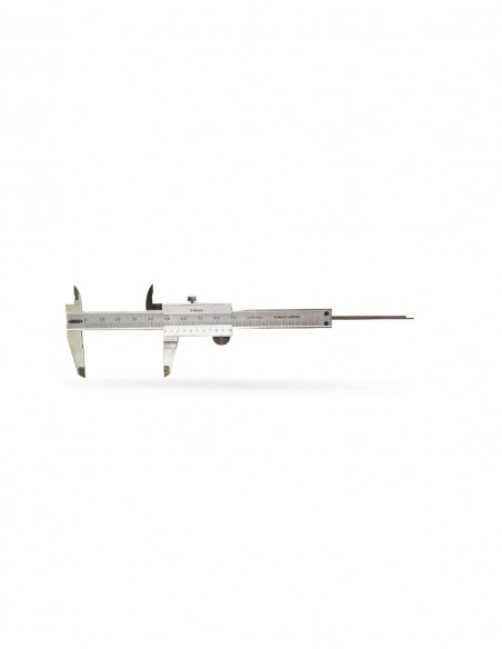 Es un instrumento para medir longitudes que permite lecturas en milímetros y en fracciones de pulgada, a través de una escala llamada Nonio o Vernier. Está compuesto por una regla fija que es donde están graduadas las escalas de medición ya sean métricas, en pulgadas o mixtas. Este tiene un largo de 100mm o 4 pulgadas, con resolucion de 0.05 centecimas de milimetros